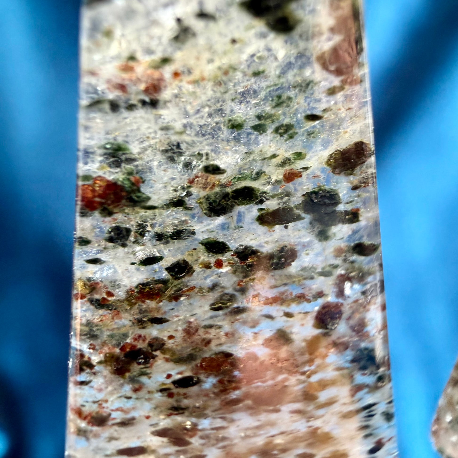 Black Rutilated Quartz is a fascinating variety of clear quartz distinguished by its intriguing scattered inclusions. Instead of distinct needles, it features tiny black dots or specks suspended within the transparent crystal.