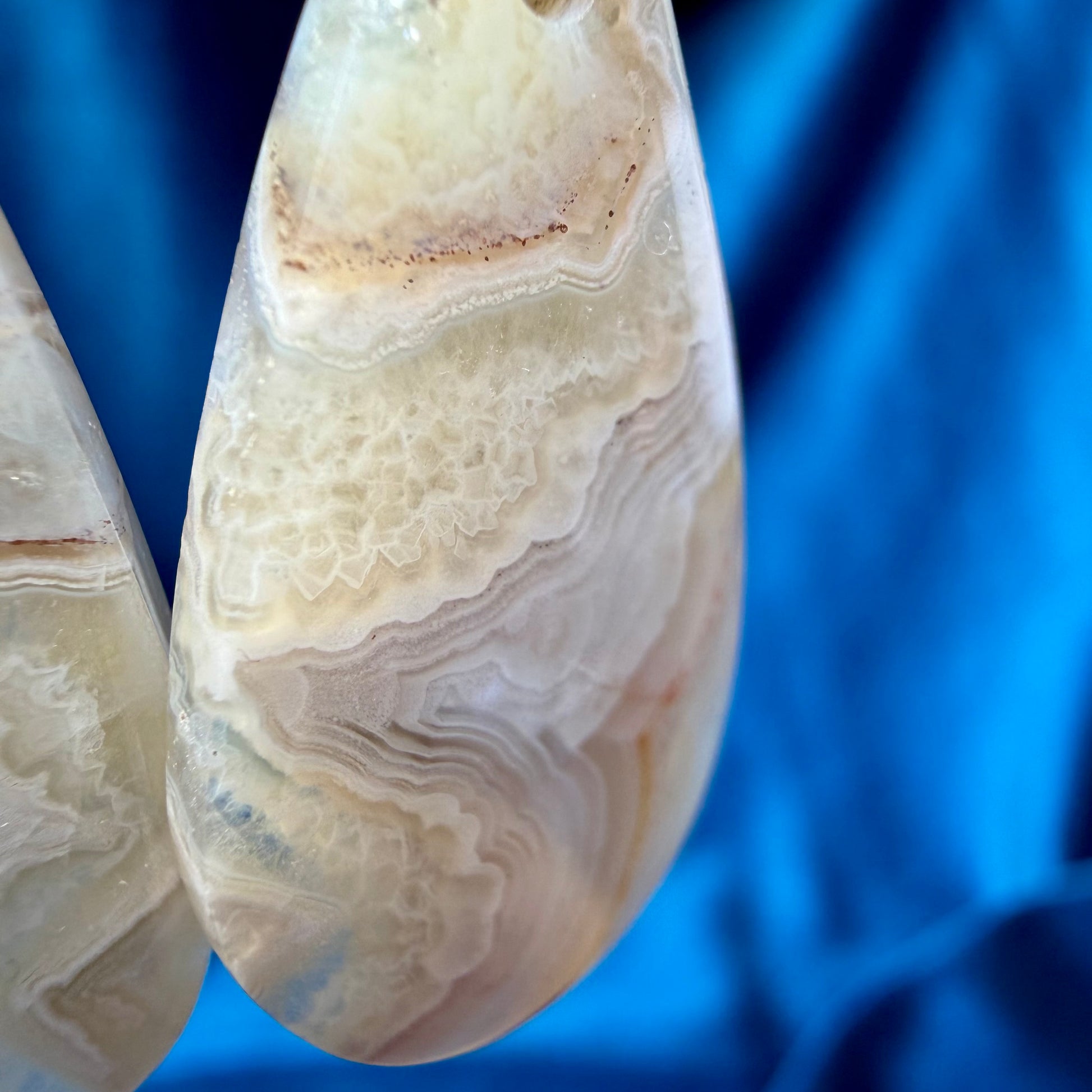 Teardrop Crazy Lace Agate drop earrings with Sterling Silver hooks.
